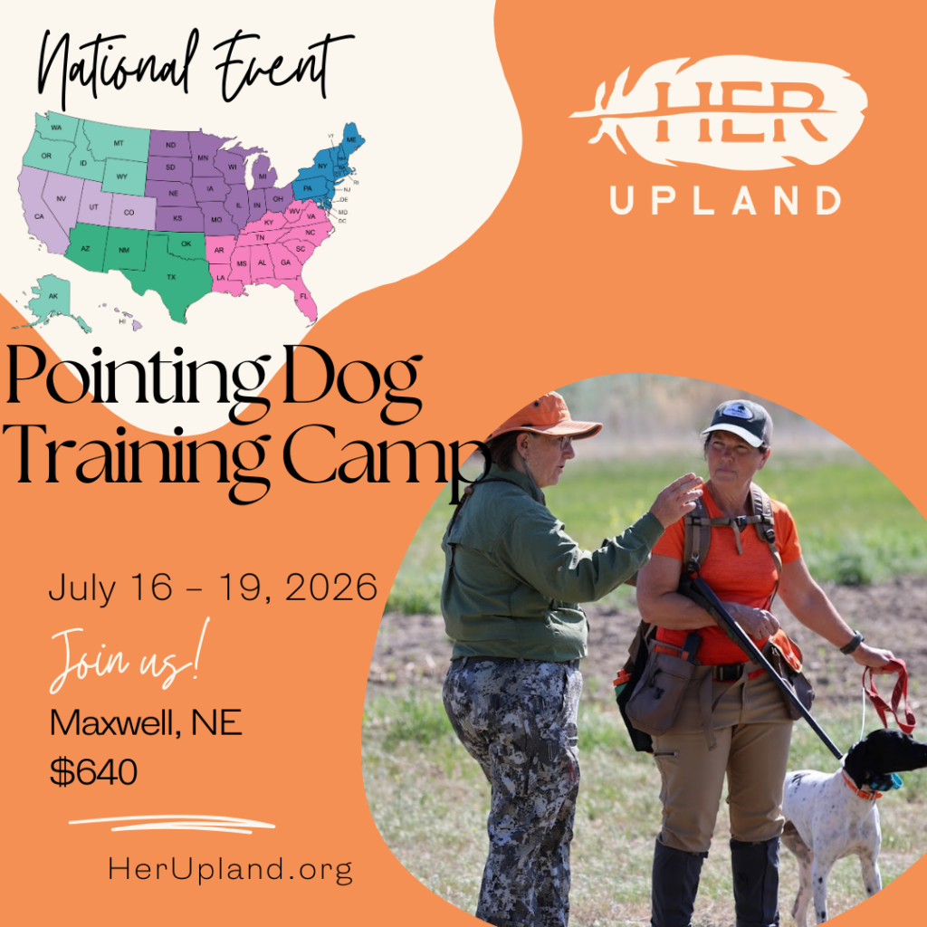 The HerUpland Pointing Dog Training Camp offers a unique four-day experience for women and youth looking to improve their skills in training Pointing dogs, from novices to advanced handlers. The camp starts with an evaluation of each dog’s abilities, followed by intensive training sessions focused on obedience, relationship building, steadiness in the field, upland and waterfowl skills, retrieve training, tracking wounded gamebirds, and working in brace with other dogs. Expert instructors provide personalized feedback and evaluations, ensuring participants leave with actionable insights and training strategies. FAQ’s