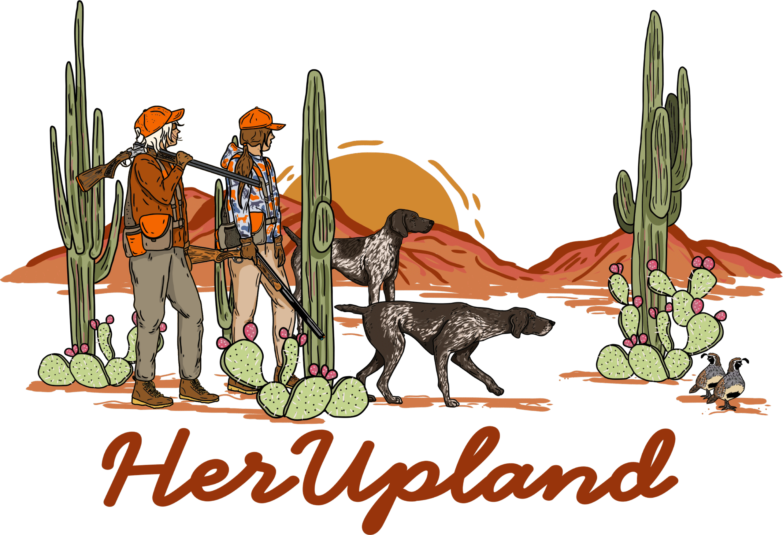 Southwest Upland Vibes: Inspired by desert quail hunts and wide-open country, this illustration brings the warmth of the Sonoran landscape to your everyday wardrobe.